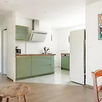 Cet établissement Grande Maison Entre Plage Et Foret dispose d'une bouilloire électrique, d'un réfrigérateur et de la vaisselle dans une cuisine complète pour préparer vos repas.